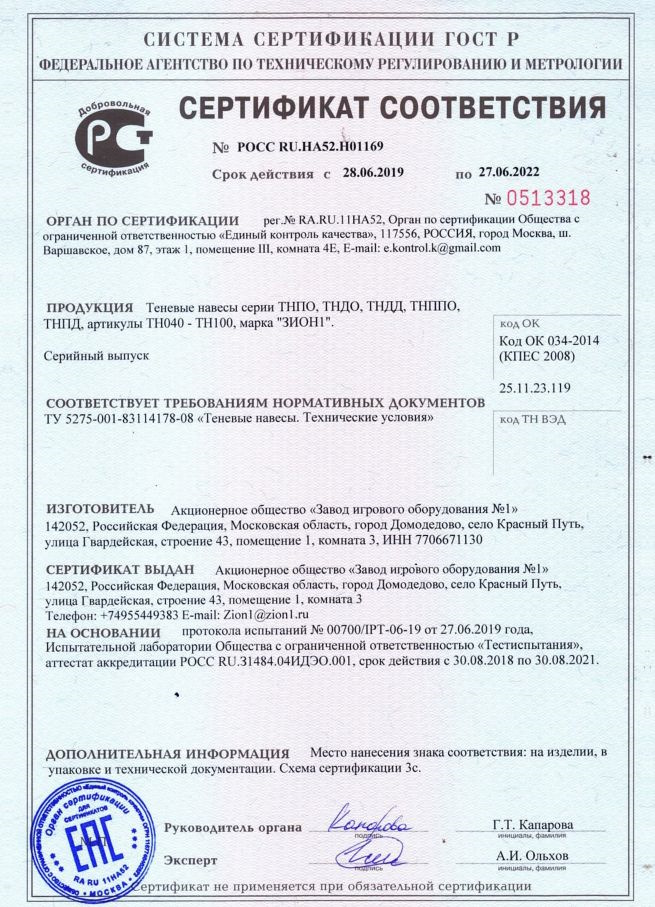 Сертификат соответствия на навесы